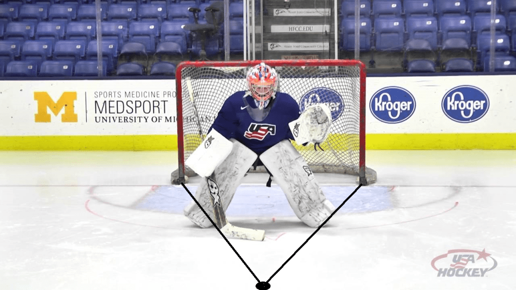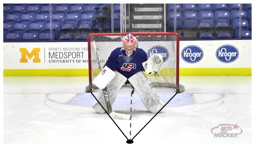 Let’s get to it then. What is depth and what is angles. First off, we’ll start with angles, because they are one of the first things your goalie needs to understand. Think of geometry, what shape can you draw when you have three points? A triangle!